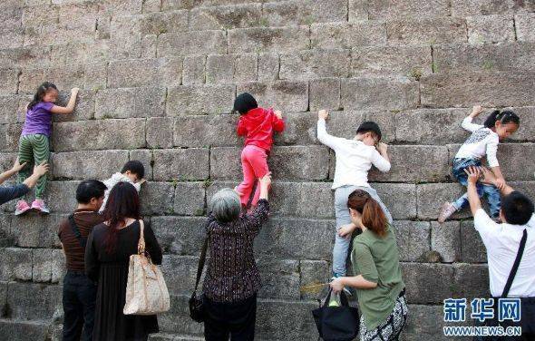 攀爬百年历史城墙