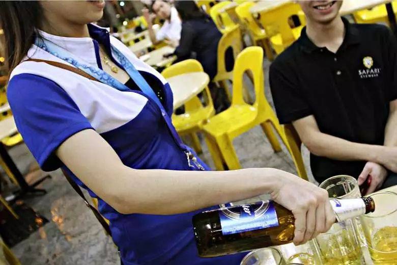 她在小贩中心做啤酒妹