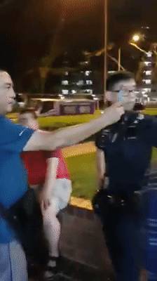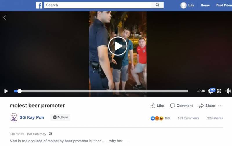 最近,一段视频疯传网络!让成千上万在新加坡 打拼和生活的中国人 看完了深深的感到 百感交集 红衣服大哥在小贩中心 骚扰了啤酒妹不说 员警赶到现场之后 丝毫没有配合调查的态度 蓝衣服大哥为哥们儿出头 全程拿手机对着员警拍视频 表情戏谑、表现嚣张 引发了全岛热议!