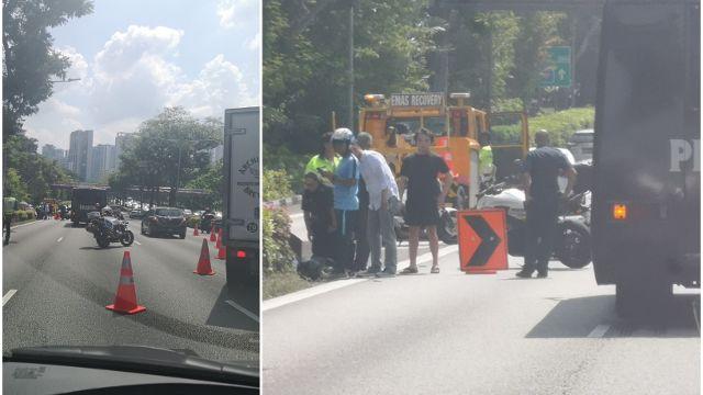 事件发生在今天中午2点47分,当时,出事的摩托车行驶在中央快速公路(CTE)往亚逸拉惹快速公路(AYE)方向路上。