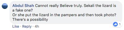 也有网友认为这有可能是假新闻。壁虎有可能是假的,或是Vernice自己把壁虎放进尿片里,然后拍照。