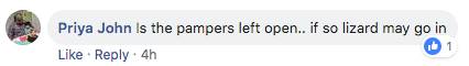 有网友猜测,尿片包装有可能已被打开,所以壁虎能进入。
