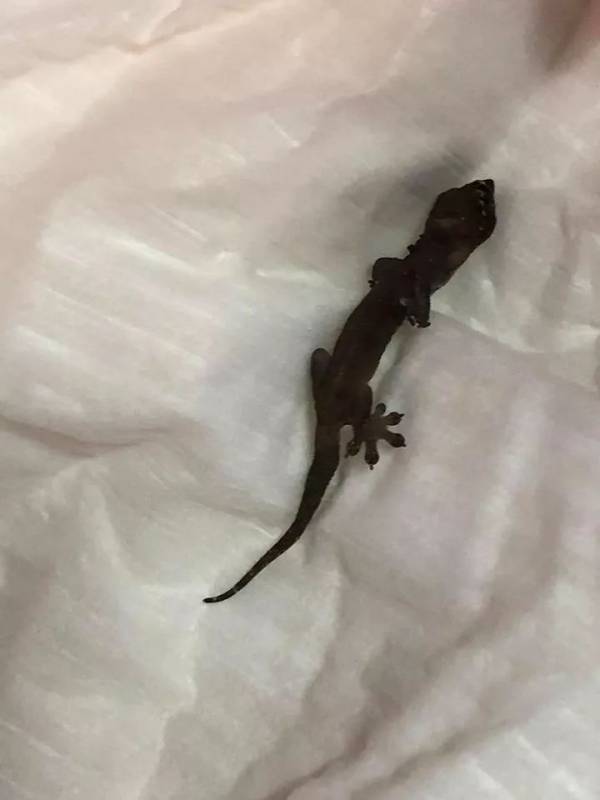 不料在取出第一个尿片时,就发现里头具有一只死壁虎。