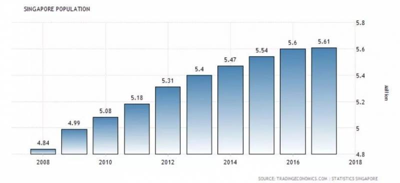 从上图我们可以看到新加坡人口增长的趋势(2008年至2017年)
