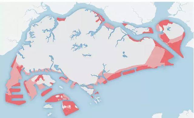 红色区域显示了未来可能的填海计划,大家可以看到,如果这些计划得以实施,到了2030年,岛上原有的海岸线又会改变不少,新加坡的土地面积又会涨涨涨!