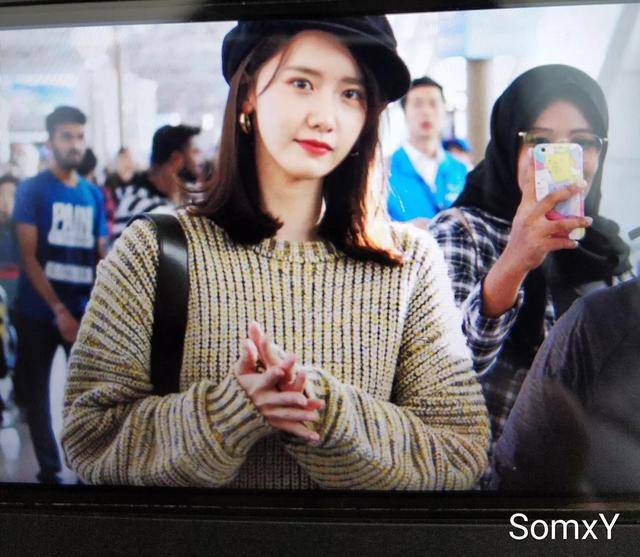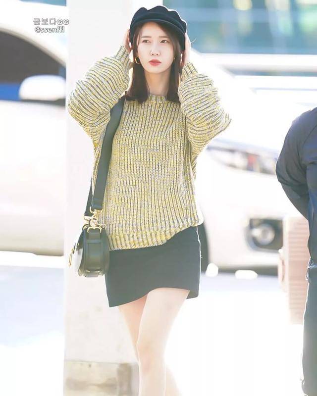 本月28日林允儿将在新加坡举行粉丝见面会,今日从仁川机场飞新加坡,毛衣配皮裙,搭配一顶贝雷帽,时尚又能赶走初秋凉意。