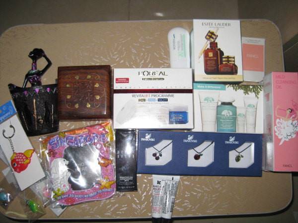 广告刺激,那么新加坡给我的便是那种猎奇之后的满足,虽然猎物真的不多。最后,放出本次旅行的最大收获,也是为了造福更多同样有着超强购物欲的JM(雷小姐,说的其中一个就是你^_^),当当当当,我列出了如下清单—— 两地各品牌的对比:(坡币对人民币的银联汇率是5.1,visa等为5.2,港币对人民币是0.86,大家自己算哈!) 物品HK机场樟宜机场EL的ANR眼面精华套装HKD1010 S$166 SKII Facial treatment mask(10 pic) HKD680 S$115欧莱雅提拉紧致套装(日晚眼霜) HKD385 S$59.5雪肌精水HKD340 S$68ORIGIN 基础护肤套装(四件小样) S$31露华浓粉饼S$12.8BURBEERY 粉红恋歌香水HKD420 S$80BENIFIT 固体修容膏HKD300 S$65FANCL卸妆油(2只装) HKD396 S$60(专柜)最后来一张吧,我买的真的不多!!!