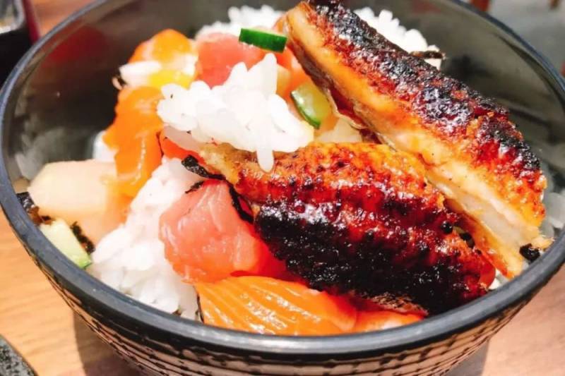 选用了北海道上乘大米,拌著烤的外脆里嫩的鳗鱼和切成小块的三文鱼金枪鱼刺身,每一口都是在唔唔唔中咽下,画面太过刺激,请自行脑补。