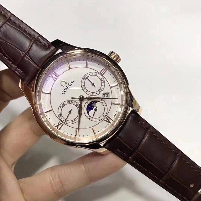 欧米茄碟飞运动系列,搭载进口多功能自动机械机芯,3字位月历盘,6字位24时,日月星辰功能,9字位星期盘,采用316精钢,蓝宝石玻璃,头层小牛皮带,深度防水,坚固耐用