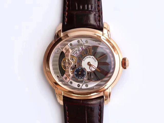 爱彼千禧系列男装腕表,一款上手才知道靓的耐看型手表。不惜重金原装开模,逐个零件开模原装4101机芯,确保高度还原而且保证机芯稳定性。外层铸铜然后镀750金(镀金厚度达到5个丝),持久不掉色。和原装一样的尺寸:41毫米x47mm,厚度13毫米。表壳完全抄写原装数据,就连螺丝开孔位置和大小都一样。圈口、底盖、镜片等等零部件都时可以和原装通用的。
