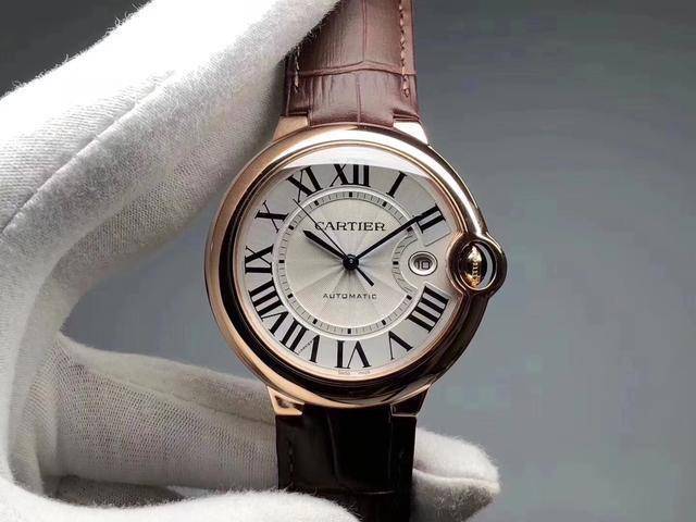 卡地亚玫瑰金蓝气球大号,42mm男款机械,认准细节很重要,表盘颜色. 表壳等细节做了新一轮修正,指针采用与整品一样的工艺,玻璃不单单只是蓝宝石,在这个基础上还要做折射,月牙那里还要做一个斜坡,自动铊蚀字也修正到与原版一致,精益求精.