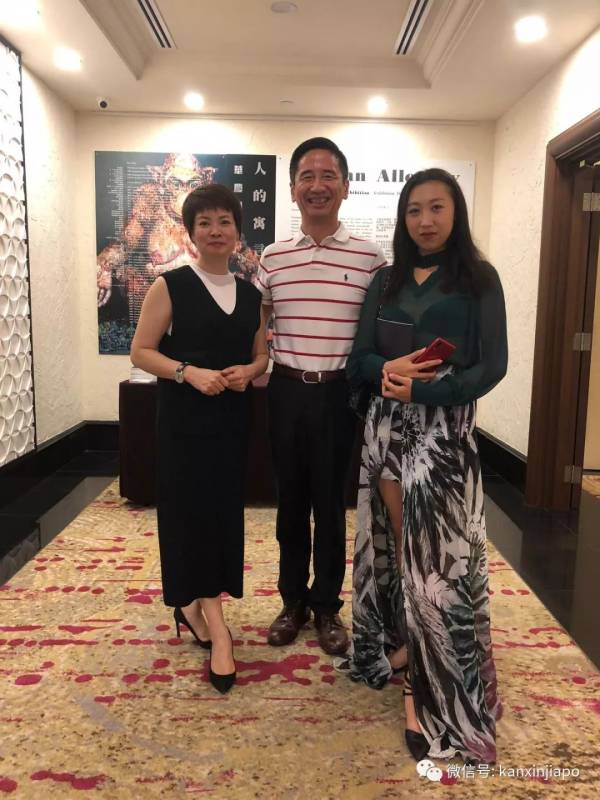 左边,李正秀Nanman Art 负责人;中间,李玮,新加坡友邦保险高净值财务服务集团总监;右边,艺术家的朋友康平到现场祝贺。