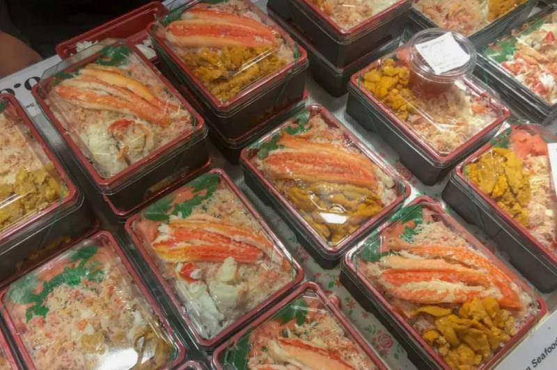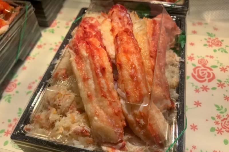 一条条新鲜嫩红的蟹腿完整的饭上,搭配着海胆或三文鱼卵等食材,吃完一份幸福感爆灯。