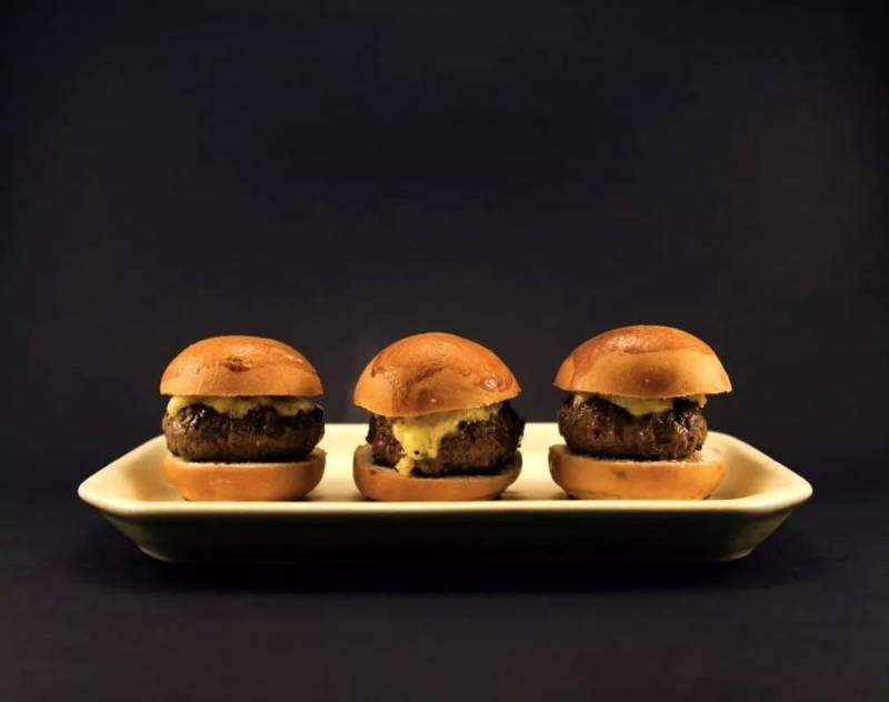 品尝一款没有肉但吃起来像有肉的松露汉堡,融化的奶酪,配上松露油,非常美味。
