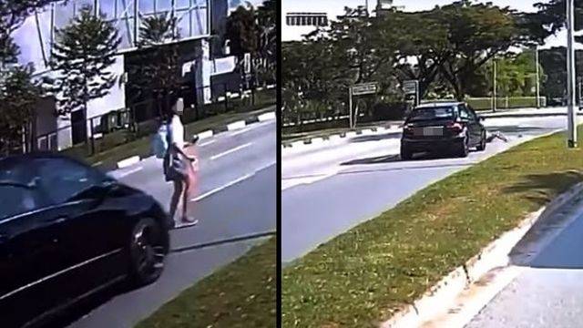网民Brownie Tan向Sg Road Vigilante的Facebook页面提供的视频显示,一名背著书包的女学生在淡滨尼一带过马路时,没有留意右方的车辆,被一辆黑色休旅车撞飞,跌倒在车前。视频显示,司机立刻停车了解情况。