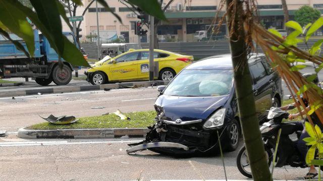 双溪加株道( Sungei Kadut Avenue)下午发生车祸。一辆德士和一辆轿车在路口相撞,车头严重损毁。事故造成四人受伤,目前已送院接受治疗。