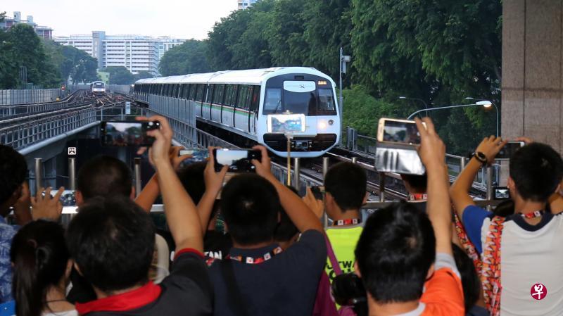 地铁南北与东西线的首列新列车昨早约7时从碧山车厂出发,之后抵达宏茂桥地铁站时,许多地铁爱好者纷纷拍下新列车入站的情况。(梁麒麟摄)