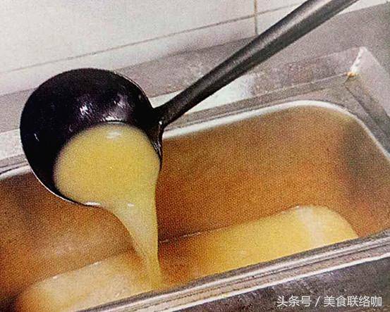猪大腿骨20斤敲断,氽水后冲去表面浮沫,放入汤桶,添清水60斤,放白萝ト片1500克、洋葱1200克、苹果片400克、姜片300克、干海米200克(提前干焙出香)、大葱段150克,加泡软的干海带250克,大火冲3小时,滤去渣滓,加适量盐调味即成。