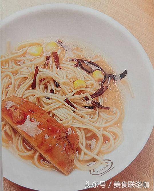广告3、煮面条:拉面40克入沸水煮熟,捞出装进碗中,舀入豚骨汤50克,放鸡扒1条,木耳丝(提前汆水)5克、甜脆玉米粒4颗即。