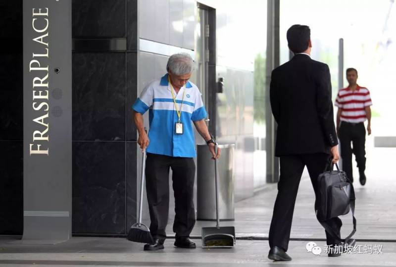 在新加坡,经常能看到年纪偏大的清洁工。(海峡时报)