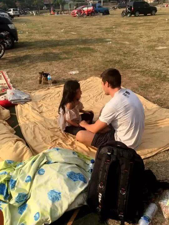 黄先生在印尼本地人设立的避难中心里与朋友以及救出的小女孩团聚。避难中心为40多名幸存者提供了水和床垫休息。整个晚上,余震不断。