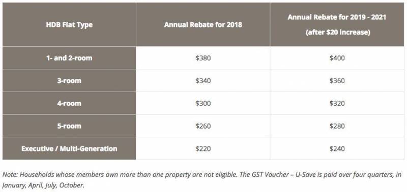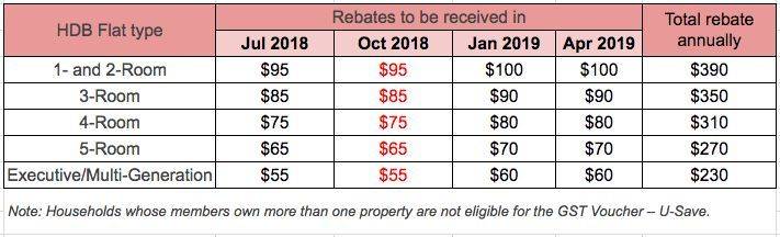 根据财政部所公布的数据可以看到,每年1房式和2房式组屋家庭会得到总计$390新币的回扣,其余则分别能拿到$350,$310,$270和$230的总回扣。
