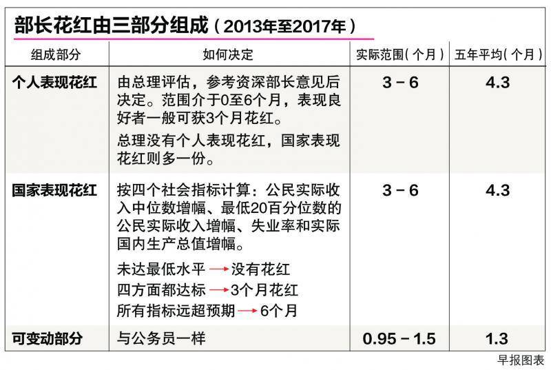 部长薪金完全透明,初级部长一般年薪在110万元左右,其中,花红由个人表现、国内生产总值和失业率等指标决定,薪金配套不包含其他隐藏收入或好处。