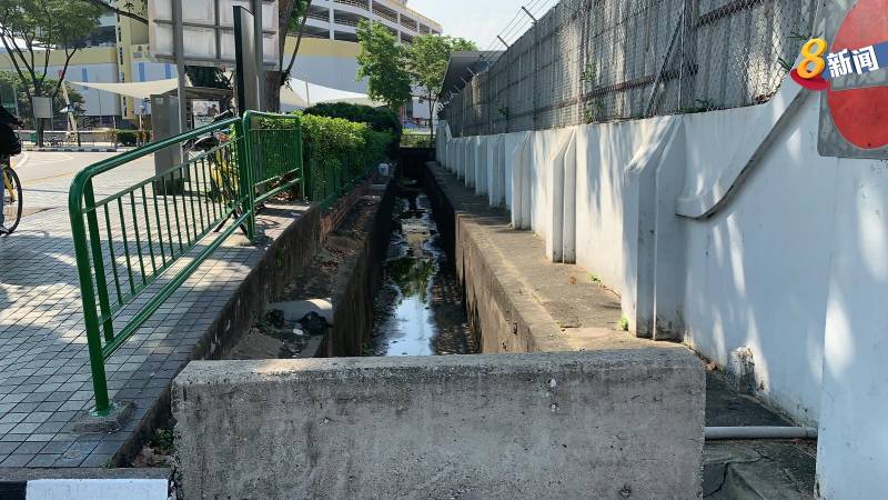 据目击者说,酒醉男子企图从水泥墙跳向绿色围栏时,不慎跌入沟渠。(照片:李怡桦)
