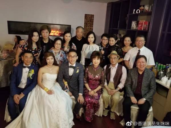 朱咪咪(前右3)的长子去年娶老婆,如今婆媳一家人等在新加坡同住一个屋檐下。(互联网)