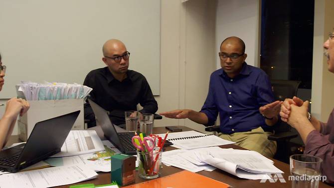 普杰立和研究人员研读调查数据。(照片:《亚洲新闻台》)