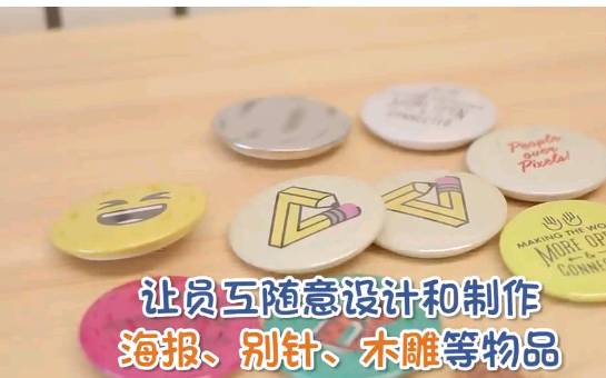 这些小物件,在办公区域随处可见,这也是脸书独特的企业文化,脸书在办公室内设有一个“Analog研究室”,让员工随意设计和印制海报、别针、木雕等物品。这些设计成品,仅是让员工装饰工作台,均不出售。