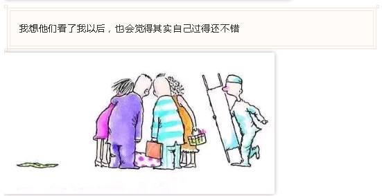 其实人的生活都是一样的,在觉得自己不幸的同时,别人比自己更不幸。所以要学会满足和珍惜!