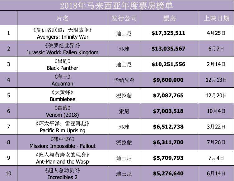 2018年,第一次有多达三部马来西亚本土影片的票房超过3000万马来西亚林吉特(合720万美元),这反映了该国电影行业在健康成长,业内预计今年马来西亚还将会有一些新的突破。