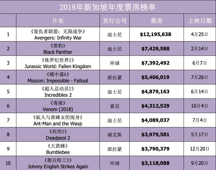 2018年当地的浪漫爱情影片获得了市场成功,比如梁智强(Jack Neo)的《旺得福!梁细妹》(Lunar New Year hit Wonderful! Liang Xi Mei),而在类型片方面,越来越多的电影制作人试图将他们的作品进一步与流媒体公司合作。