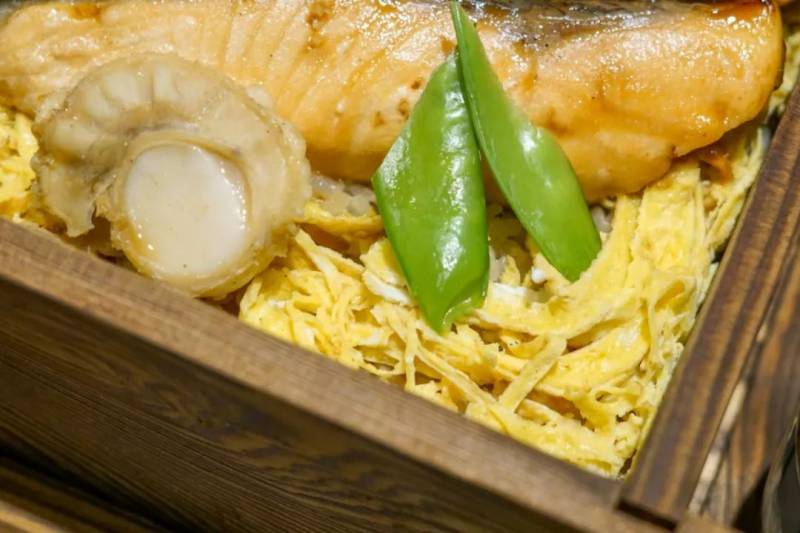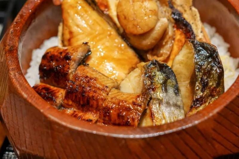 秋季限定的海鲜柜涂鳗鱼饭与笼蒸鲑鱼饭
