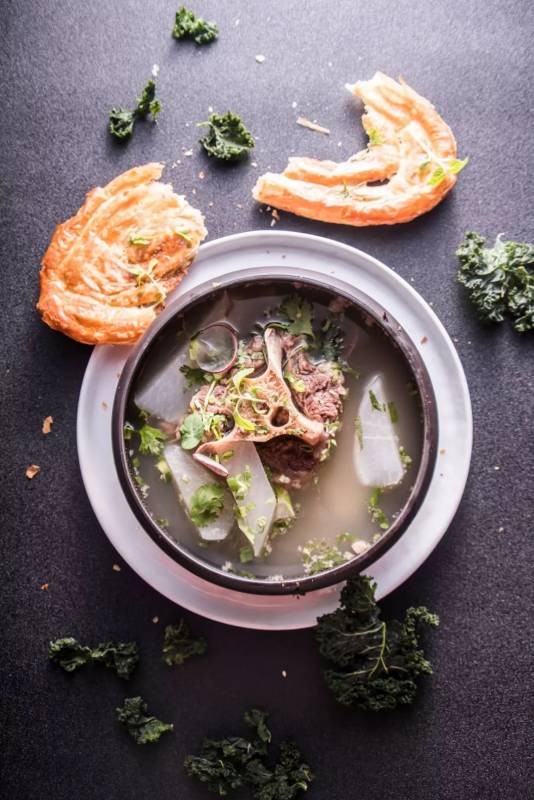Sichuan Oxtail Soup, S$24: 当然不是所有的川菜都是辣的哦!比如这道Sichuan Oxtail Soup就是一碗非常温柔的暖心汤。香菜,当归根,丹参... ...慢慢炖煮的牛尾汤,清淡但不失鲜美,好喝又补身。而边上那一块画龙点睛的香咸葱油饼,更是会让你食欲大增!