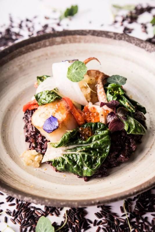 The Forbidden Risotto, S$35: 这道中式的意大利烩饭味道可以说是非常有趣的。黑米取代了传统的意大利米,用酸菜和姜汁蒸煮,搭配了海鲜和蔬菜,再点缀了一些鱼卵,小编个人觉得绝对比普通的意大利烩饭有深度多了!