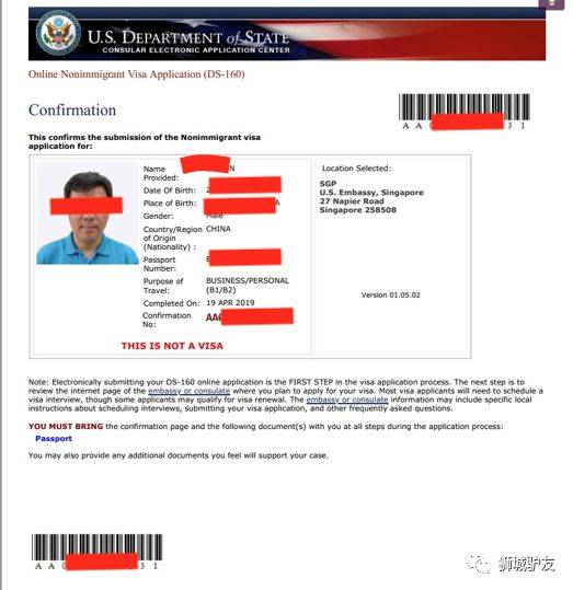 2. DS-160 Confirmation Page DS-160表格确认页 (内容页不需要)