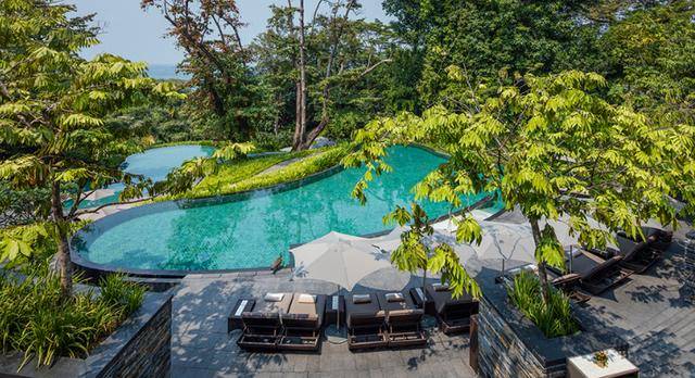 新加坡嘉佩乐酒店坐落于圣淘沙岛的翠绿山峦之中,周围热带雨林环绕,私密性极佳,仿佛一座顶级私人庄园。酒店前身为殖民时期英国高级官员的会议场所,当时的建筑Tanah Merah(马来文意为“红土”)被作为历史古迹很好的保留下来,并与Foster + Partners工作室打造的“8”字形现代建筑完美融合。
