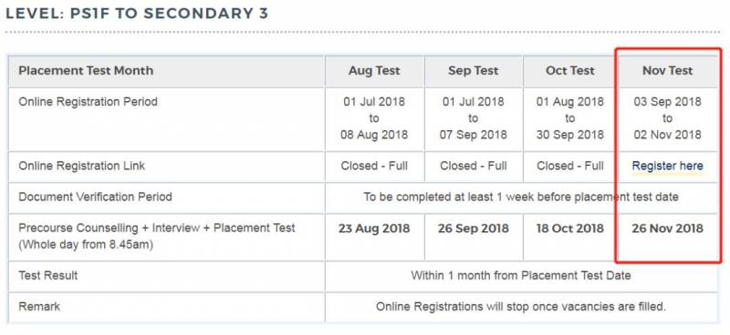告诉大家一个好消息,10月份的考试已经没有名额了,11月份是参加学校入学考试的最后机会。学校提供了少量的名额从小一到小五、中一到中三,名额有限,报名时间也很紧迫,名额满提前截止,这也是孩子明年1月能够进校读书的最后一次报名考试机会~