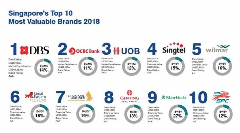 英国品牌评估机构Brand Finance发布“2018新加坡最有价值的100大品牌”排行榜(Brand Finance Singapore 100 2018)。