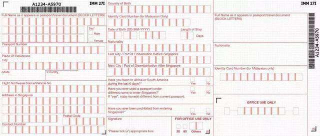 经常往返新加坡的访客,会默默地收集几张以备以后再用,入境前把资料填妥,节省通关时间!