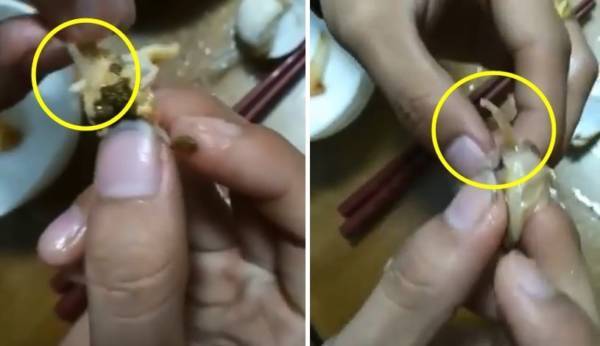 面子书流传一个视频,一名男子掰开蛤蜊,竟然从蛤蜊肉中取出仍在不断蠕动的小虫。