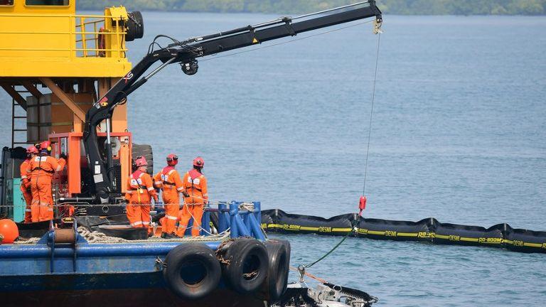 演习除了动用了一架飞机和多艘船只,也首次使用这架特殊机器。它的泵送能力强,比原油回收船更快速回收水面的漏油。