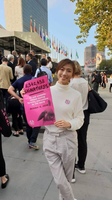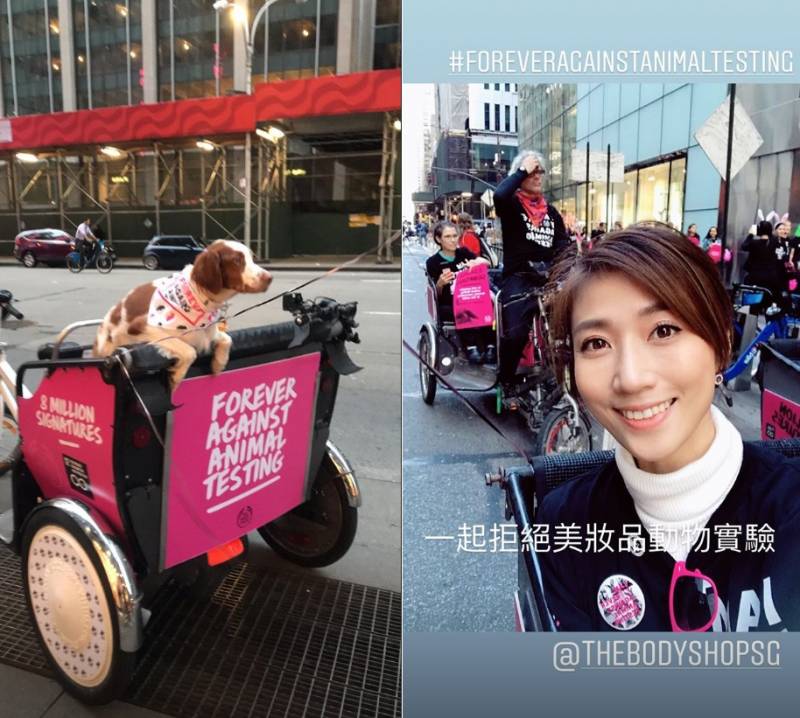 庞蕾馨则作为The Body Shop唯一的亚洲代表,和全球各地的代表一起到纽约呈交签名。好莱坞女演员Maggie Q则作为“终止动物残忍”活动代表,出席活动。