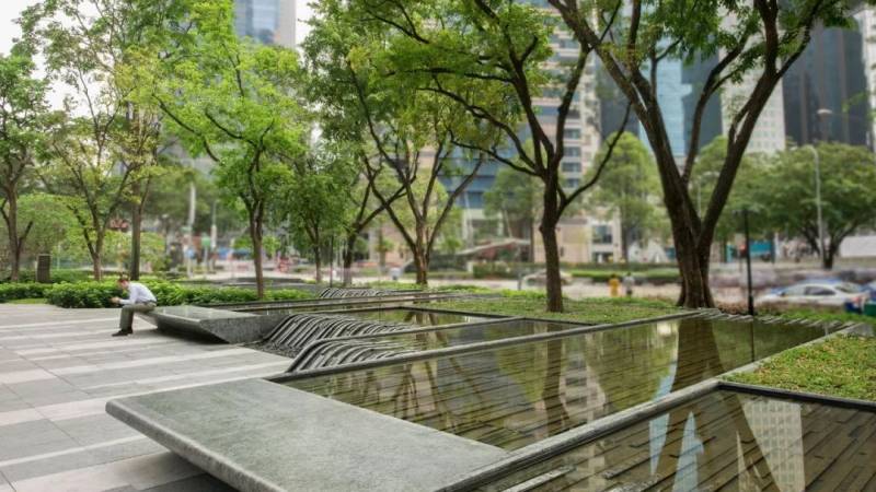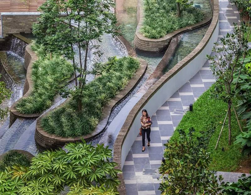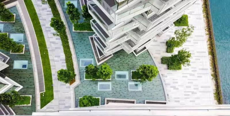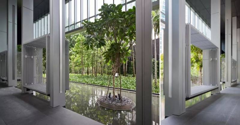 滨海盛景豪苑(Marina One Residences) 位于寸土如金的滨海湾新金融区,却奢华地创造了一片比足球场还大的绿色空间。德国著名建筑大师克里斯多夫.英恩霍文(Christoph Ingenhoven)将苑内和周围的景观完美糅合,为住户带来峇厘岛层层梯田概念的绿色园林、清新的蓝天碧海、繁华蓬勃的金融区和雄伟壮观的新加坡地标性建筑。“梯田形”中央绿地如峇厘岛层层梯田的独特设计,包围着大的绿色园林,走入园林凉风习习,还能聆听到高达13米的水帘传来的清新流水声。