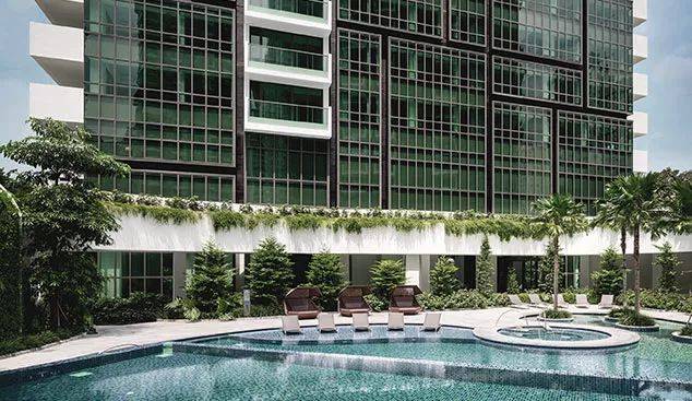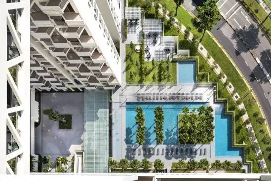 stirling residences 尚景苑坐落于非常受欢迎的新加坡第3邮区,开发商致力于打造静幽惠惬意的健康绿色的宜居环境,该项目共设置了80处豪华设施,同时配套了约2.14万平方米的庞大园林景观。三大森林主题区,中间还穿插著各种展馆、草坪和花园游泳池,打造了一个郁郁葱葱、宁静优雅的小区环境。