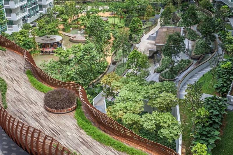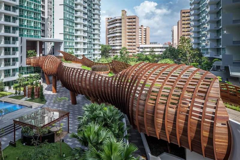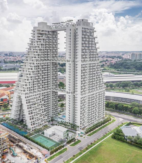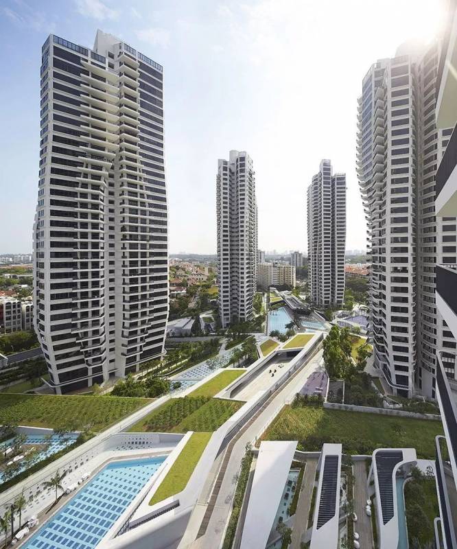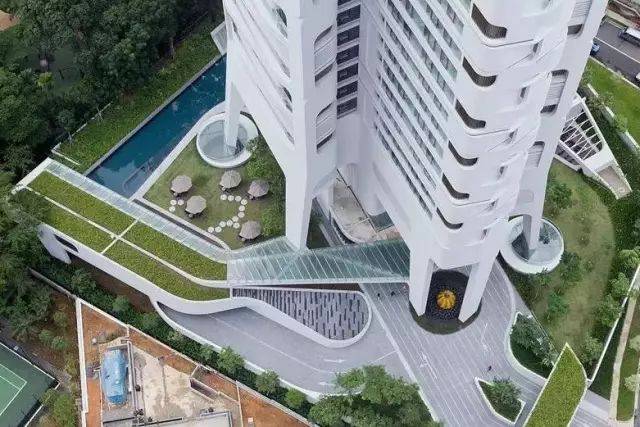 新加坡备受瞩目的大型兼新型态高尚公寓住宅综合体,概念出自大都会建筑事务所(OMA)的前合伙人奥雷·舍人(Ole Scheeren),他企图跳出新加坡传统的成片独立垂直塔楼住宅,探讨热带居住空间的其他可能性,提出一种处于自然环境之中并注重交流互动的热带生活方式。31个住宅单元,每个6层高,以六边形的格局相互联结叠加,构成6个大尺度的通透庭院,其交织的空间形成一个包括空中花园、私人和公共屋顶平台的垂直村庄。
