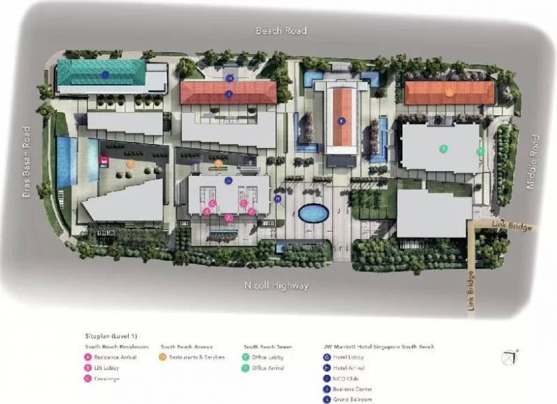 新加坡南海滩开发项目位于新加坡市中心的滨海区和市政区之间,涵盖了整个城市街区,项目由福斯特建筑事务所打造。项目把新建筑与老建筑翻修后,形成了一个高效节能,包含了商店、咖啡馆、餐厅、一个酒店和公共空间的,将生活和工作结合在一起的新城市街区。两个空中花园由法国知名设计师菲利普·斯塔克设计。