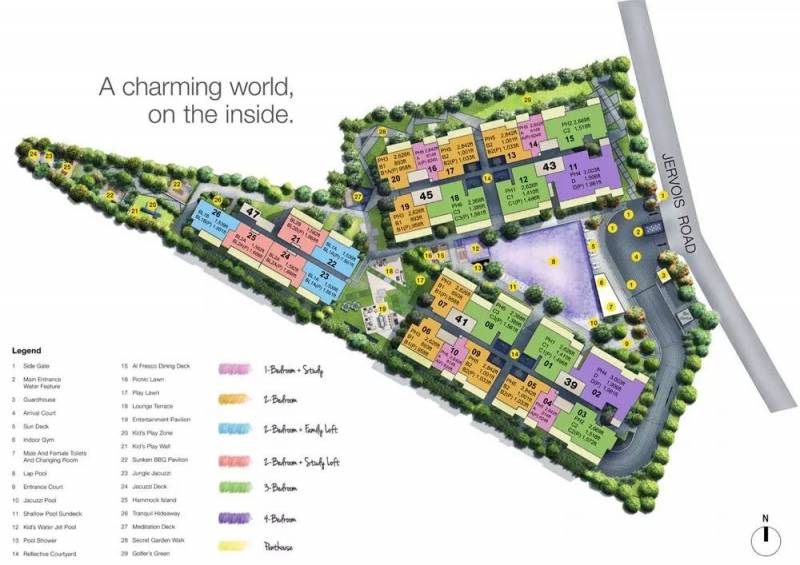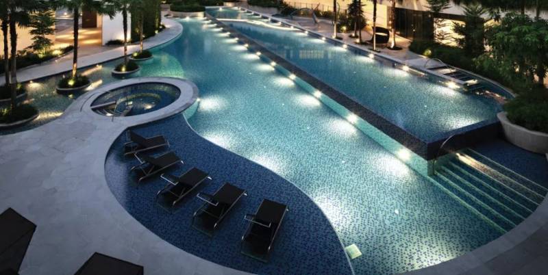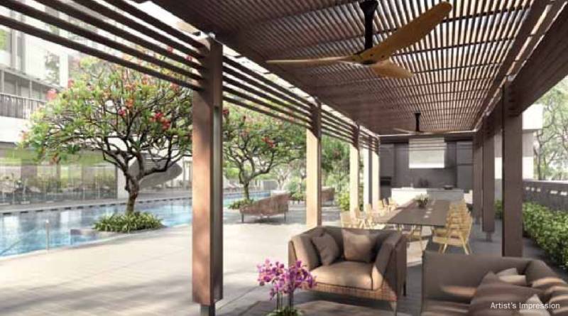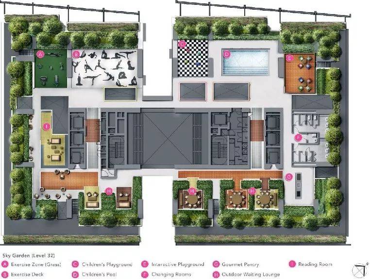 公寓设施应有尽有——抵达厅、胡姬花园、图书馆、用餐区、户外阳台、健身房、游泳池、按摩池、儿童戏水池、休息区、保安室等等。